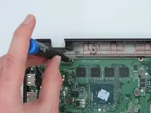 С помощью отвёртки JIS #00 выкрутите четыре винта 1 мм, которые удерживают материнскую плату.