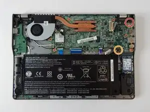 Удалите винт длиной 3.75 мм рядом с верхним правым углом аккумулятора с помощью отвертки Phillips #0.