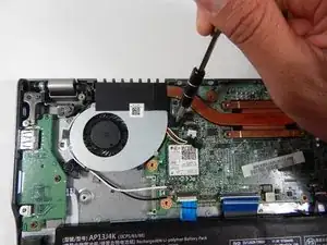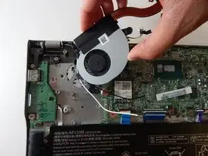 Поднимите кулер и поверните его от материнской платы, чтобы установить его вне ноутбука.