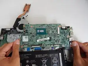 Осторожно поднимите материнскую плату от ноутбука с помощью обеих рук.