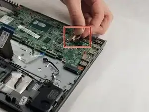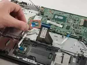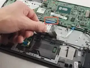 Отсоедините кабель тачпада от разъёма с нулевым усилием вставки на материнской плате.