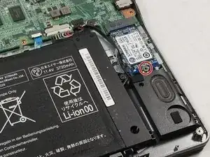 Отвинтите винт 5 мм, удерживающий SSD, крестовой отверткой Phillips #0.