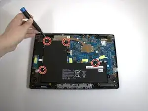 С помощью отвертки JIS #1 снимите все четыре винта 4,8 мм, удерживающие аккумулятор на месте.