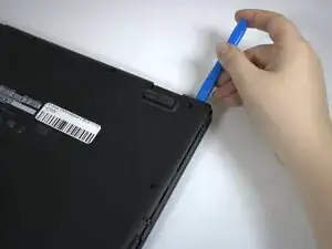 Начиная с петель, используйте лопатку для вскрытия iFixit, чтобы поддеть заднюю крышку.