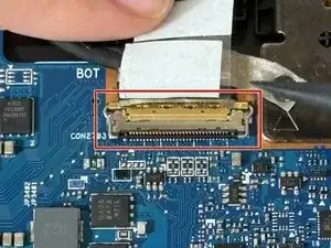 Поднимите металлическую планку, которая фиксирует кабель ЖК‑экрана.