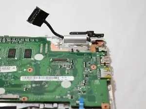 Отсоедините чёрный разъём в правом верхнем углу материнской платы.