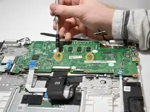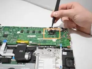 Поднимите материнскую плату из ноутбука с помощью лопатки.