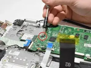 Открутите один винт JIS #1 длиной 2,8 мм с одного конца материнской платы.