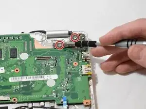 Открутите два винта JIS #1 длиной 2,2 мм из центральной части материнской платы.