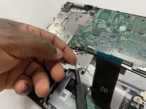 Отключите кабель ЖК-экрана, сжав его и приподняв с материнской платы.
