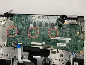 Используйте крестовую отвертку Phillips #1, чтобы открутить три винта 3 мм, фиксирующие материнскую плату.