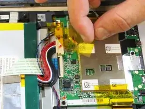 Удалите металлическую ленту, покрывающую разъём клавиатуры.