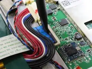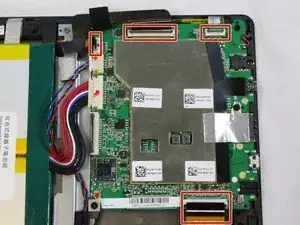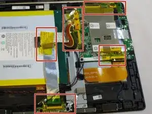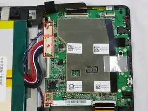 Отключите три кабеля на материнской плате, ближайшие к аккумулятору.
