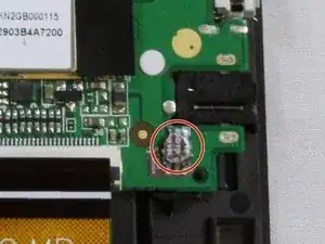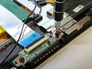 Удалите два винта Phillips #0 длиной 3,5 мм по обеим сторонам разъёма клавиатуры.