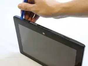 Начиная с угла планшета, используйте пластиковый инструмент для вскрытия, чтобы создать зазор между экраном и задней крышкой.