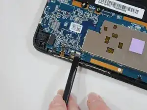 С помощью лопатки отожмите динамик с левой стороны планшета.