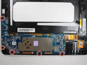 Отверткой Phillips #00 снимите пять винтов 2 мм с материнской платы. Два расположены на левой кромке и три — на нижней кромке платы.