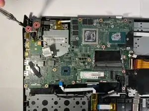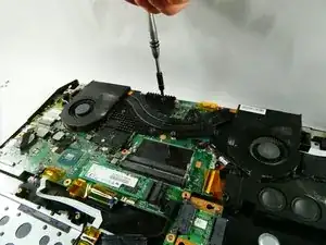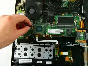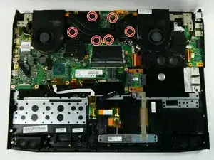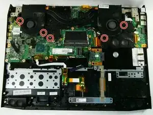 Снимите шесть винтов Phillips #0 длиной 5 мм, крепящих материнскую плату.