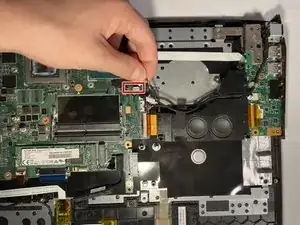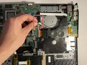 При установке обратно подключайте этот разъём, пока опускаете материнскую плату на место.