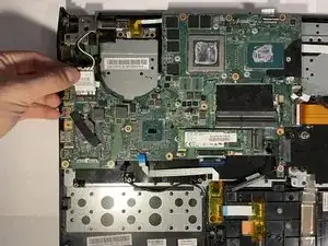 Поднимите материнскую плату вверх и выньте её из устройства. Возможно, потребуется слегка приоткрыть крышку для демонтажа.