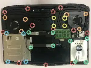 После удаления винтов, не помеченных красным, каждый соответствующий компонент можно удалить, но это не рекомендуется для этого руководства.