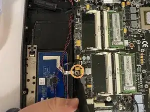 Используйте отвертку Phillips #0, чтобы выкрутить винт, удерживающий тачпад.