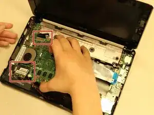 Отсоедините 3 компонента (2 провода и 1 микросхему) перед окончательным извлечением материнской платы.