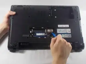 Снимите крышку отсека оперативной памяти с нижней части клавиатуры.