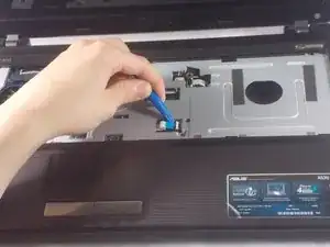 Отделите переднюю панель ноутбука от задней с помощью пластиковой лопатки.