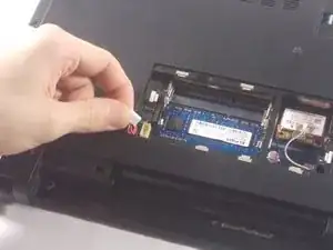 Отсоедините белый разъём от его гнезда в панели оперативной памяти.