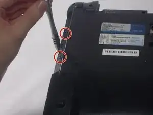 Переверните ноутбук так, чтобы батарея была обращена к вам.