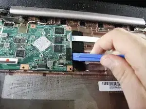 Используйте пластиковый инструмент для вскрытия, чтобы отщелкнуть клавиатуру по краям корпуса.