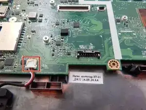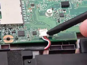 Отсоедините кабель динамика от материнской платы с помощью пластикового лопаточного инструмента.