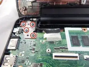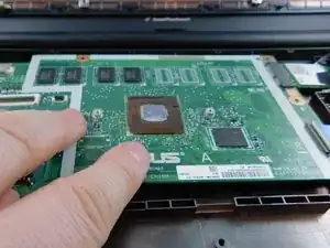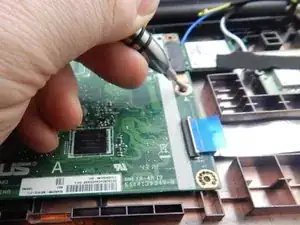 Снимите большой серебристый винт Phillips #00 длиной 5,0 мм с левого центра материнской платы.