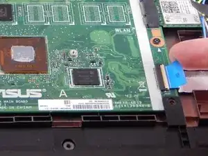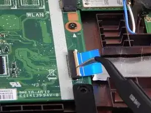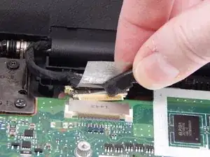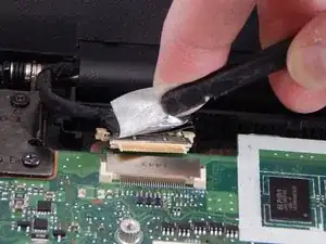 Отсоедините кабель дисплея от материнской платы с помощью пластикового лопаточного инструмента.