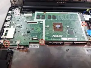 Снимите три винта Phillips #00 длиной 3,0 мм, которыми материнская плата закреплена в корпусе.