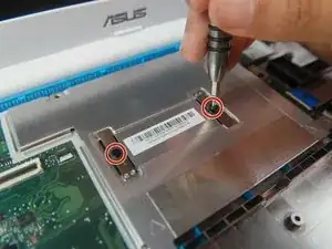 Удалите 4 винта длиной 4 мм на серебристой крышке материнской платы с помощью отвертки Phillips #000.