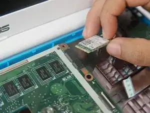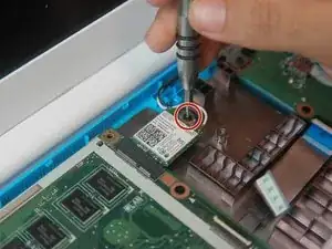 С помощью отвертки Phillips #000 выверните винт с правой стороны беспроводной карты.
