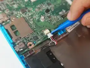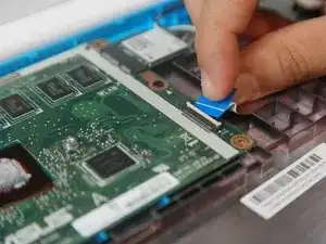 Осторожно снимите синий разъём с правой стороны материнской платы.