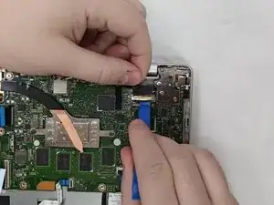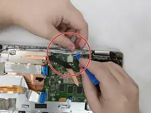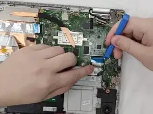 Поднимите фиксатор разъёма дисплея с помощью инструмента для вскрытия, чтобы освободить его.