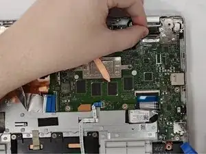 Поднимите правую верхнюю петлю, пока она не окажется вне пути материнской платы.