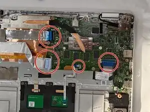 Аккуратно отключите все четыре ленточных разъёма от материнской платы.