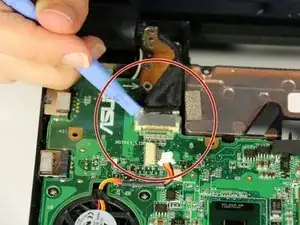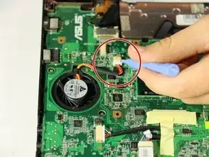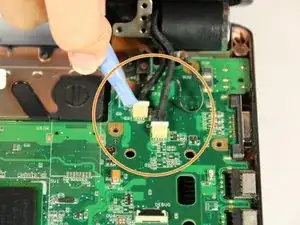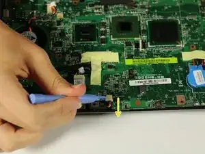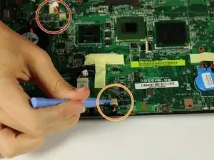 Используйте пластиковой лопаткой, чтобы отсоединить кабель от материнской платы.