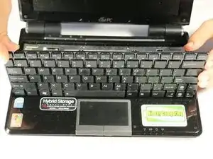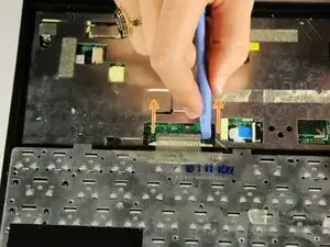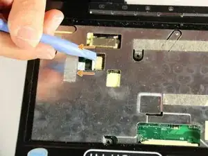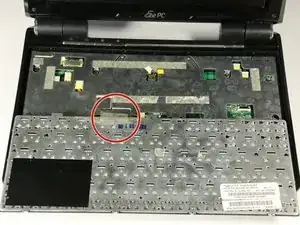 Черная полоса полностью отсоединится от ленточного кабеля. Клавиатура затем будет отделена от корпуса нетбука и может быть безопасно удалена.