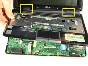 Найдите шарнирные точки в верхней части нетбука по обеим сторонам. Эти элементы соединяют экран с корпусом нетбука.