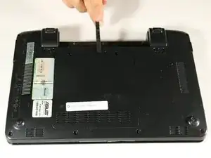 Разместите нетбук так, чтобы задняя панель была направлена вверх.