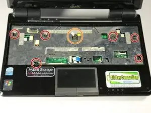 Следуйте этому руководству, если необходимо заменить материнскую плату. Это руководство также полезно для демонтажа материнской платы, чтобы получить доступ к другим деталям. Жесткий диск прикреплен как к материнской плате, так и к внешнему корпусу нетбука, поэтому жесткий диск необходимо снять, чтобы отделить материнскую плату от внешнего корпуса.