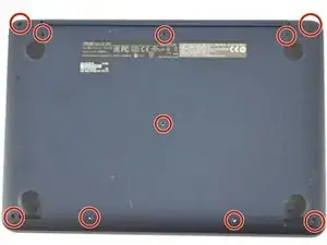 Открутите все 10 винтов по 2 мм, расположенных на дне ноутбука, используя отвертку Phillips #2.