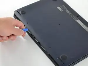 Вставьте пластиковый инструмент для открытия в щель между задней частью ноутбука и остальной частью корпуса.