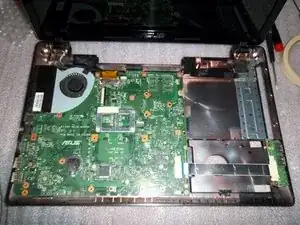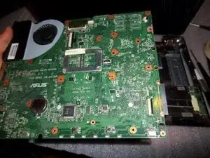 Чтобы снять материнскую плату, удалите пять винтов, показанных на фотографиях.